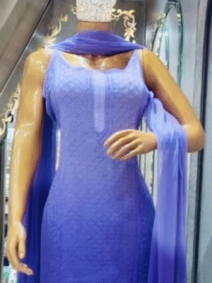 Georgette Front Panel 4 Piece Suit with Chikankari Work | Purple