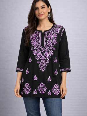 Rayon Short Kurti with Dual Color Chikankari Work | Purple and White