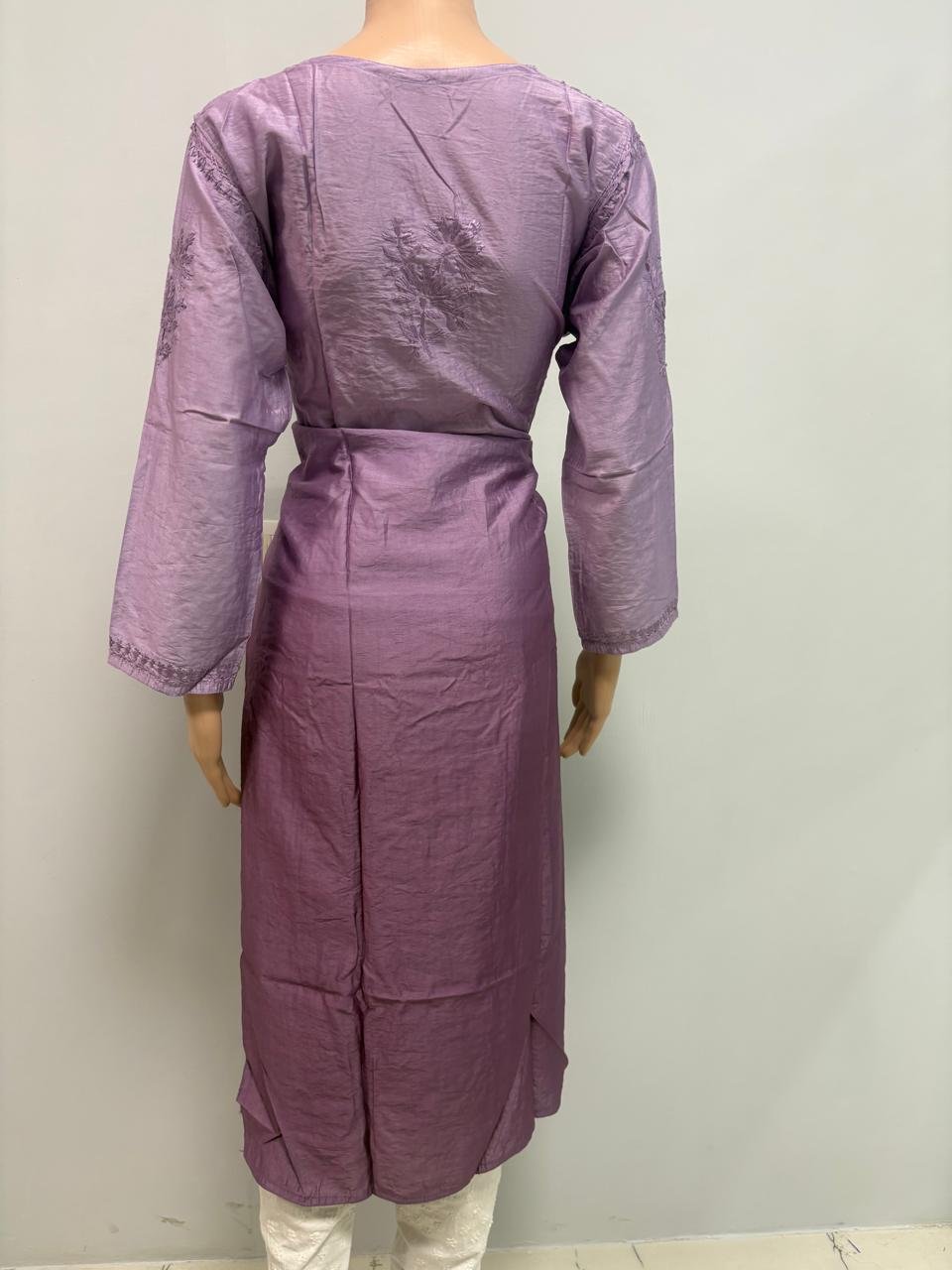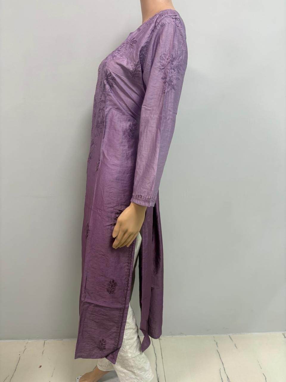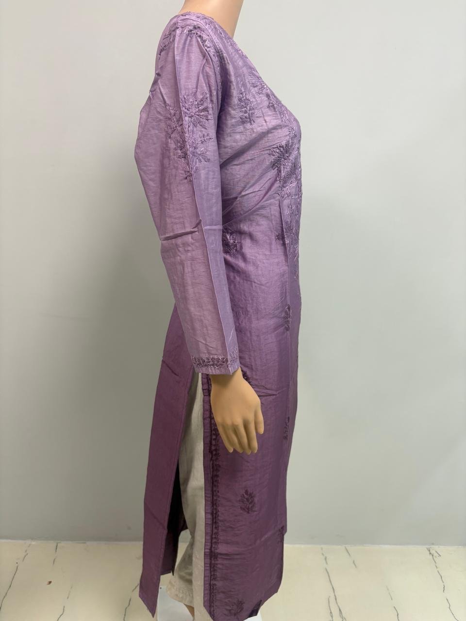 Chanderi Kurti with Color Transition and Chikankari Work | Dark Muted PurpleChanderi Kurti with Color Transition and Chikankari Work | Dark Muted Purple