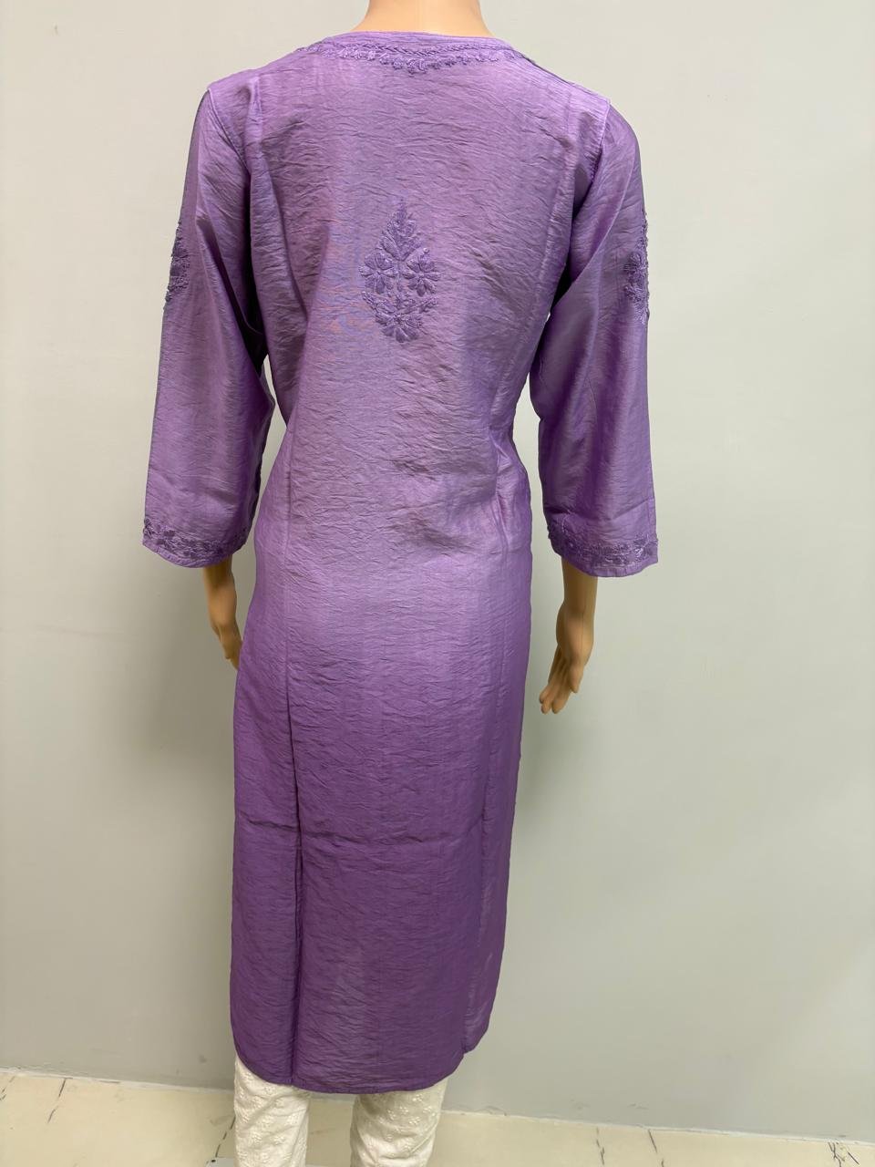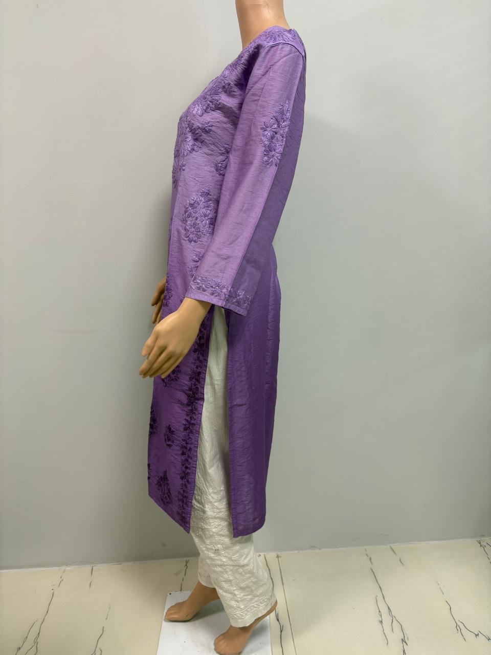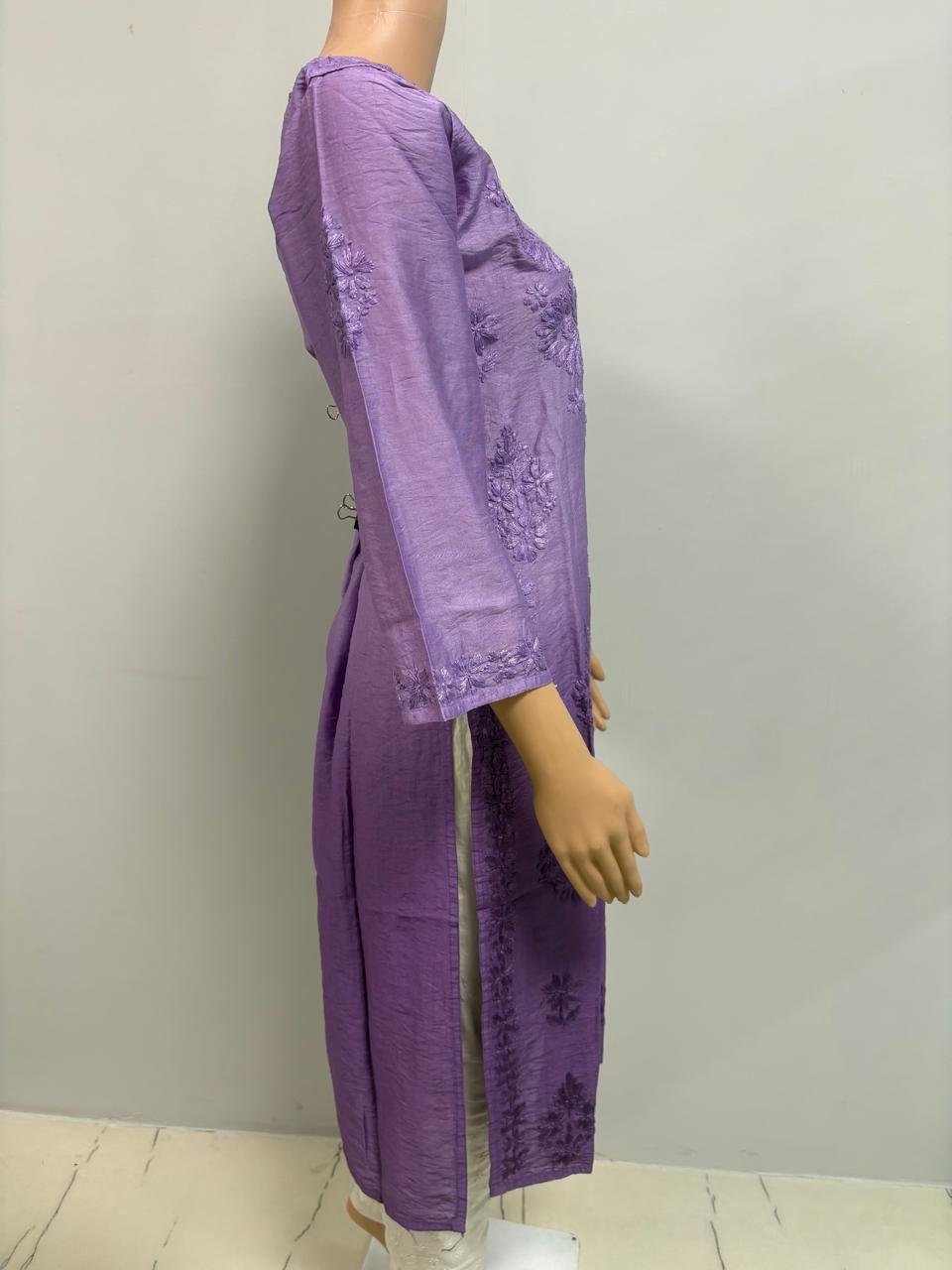 Chanderi Kurti with Color Transition and Chikankari Work |Lavender Purple