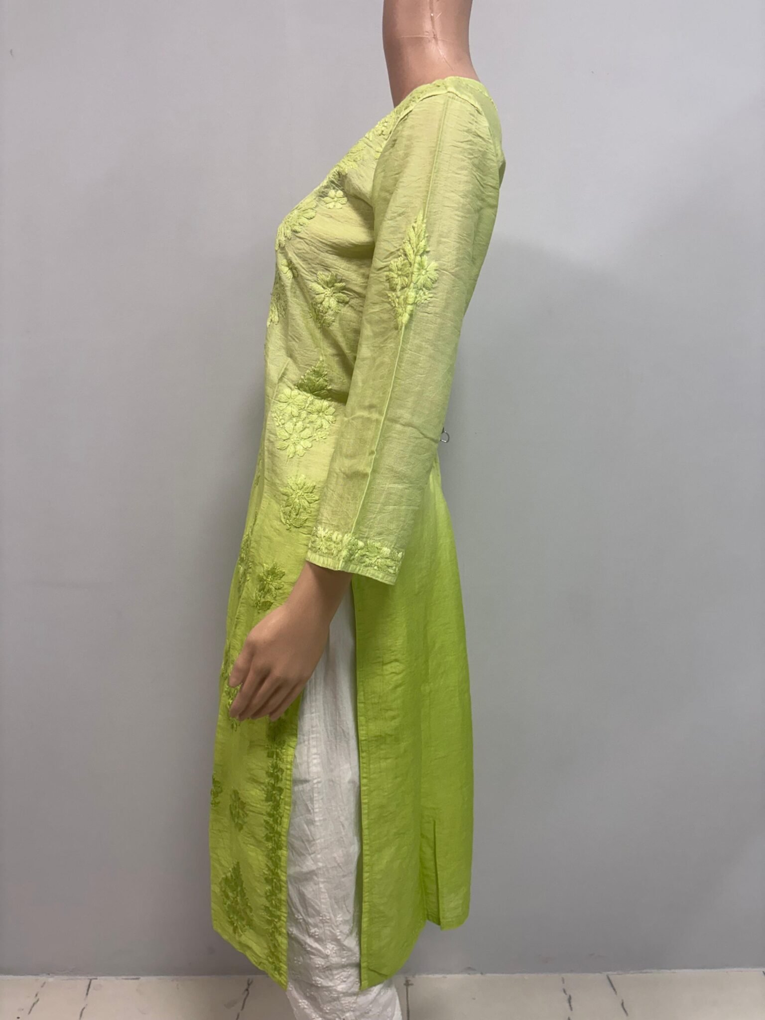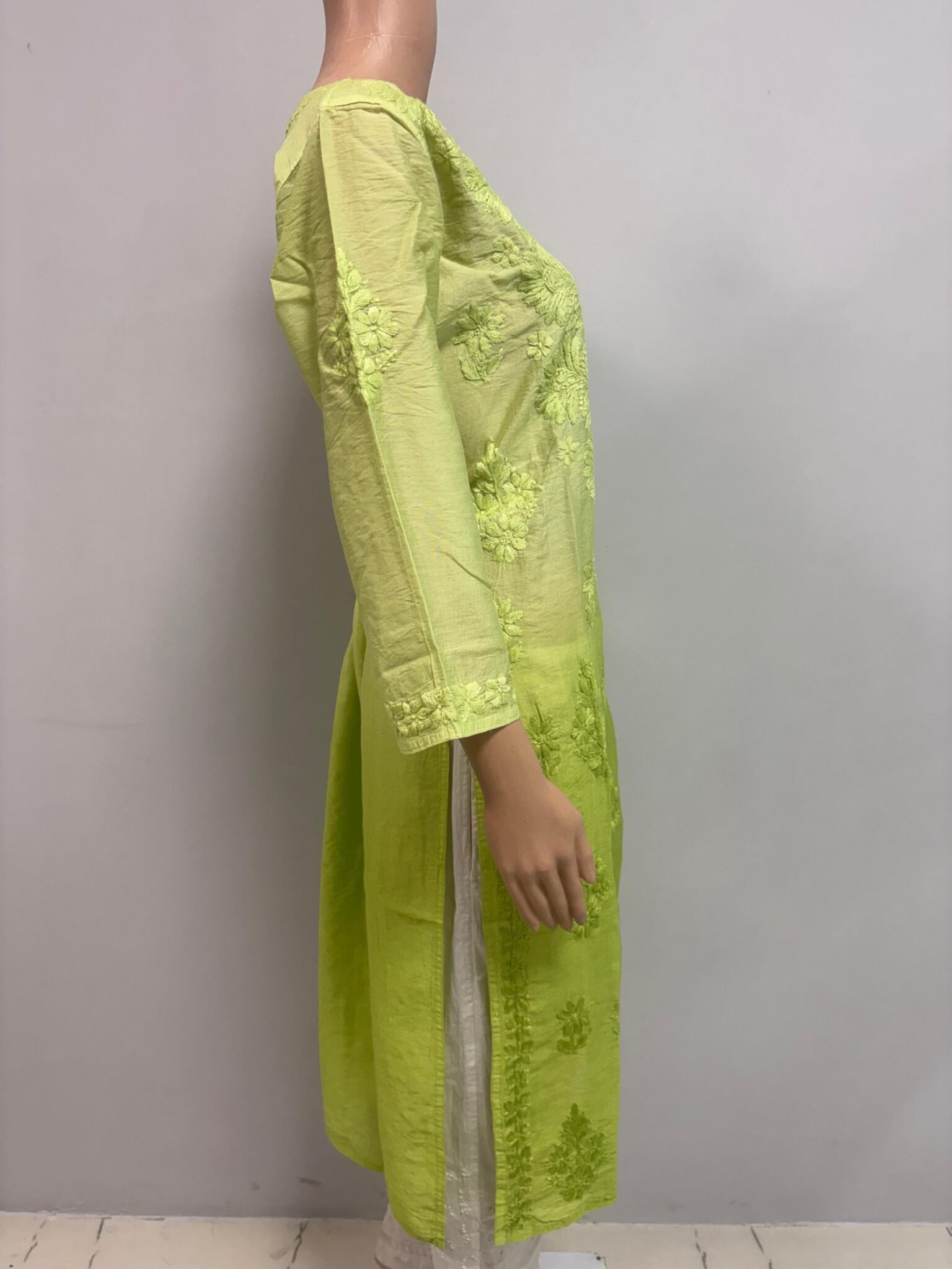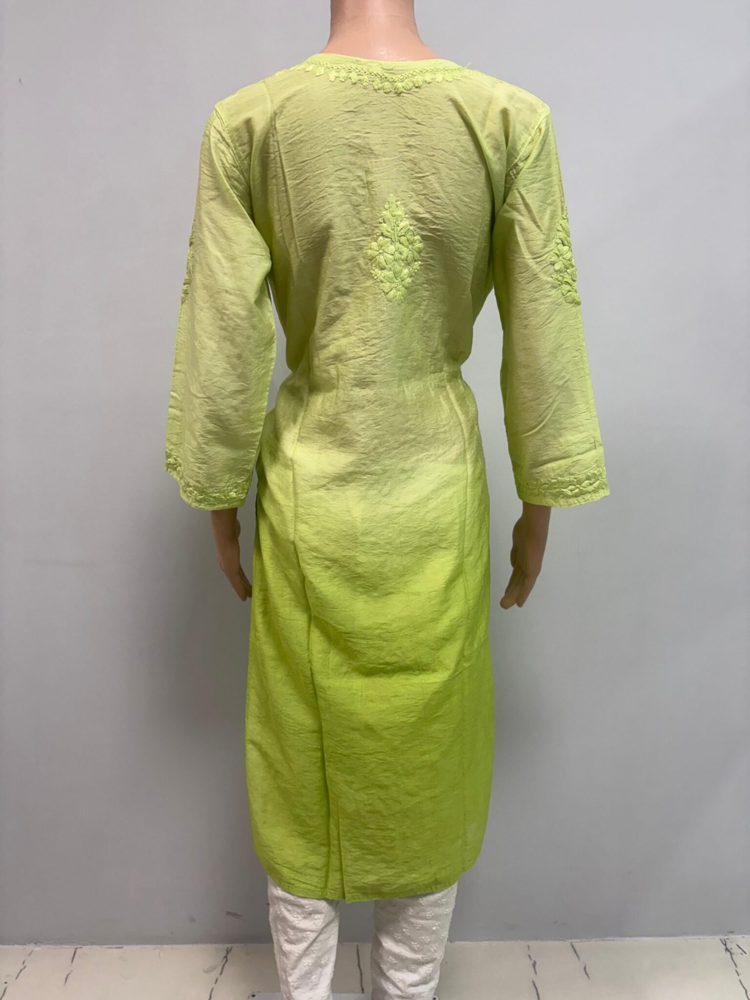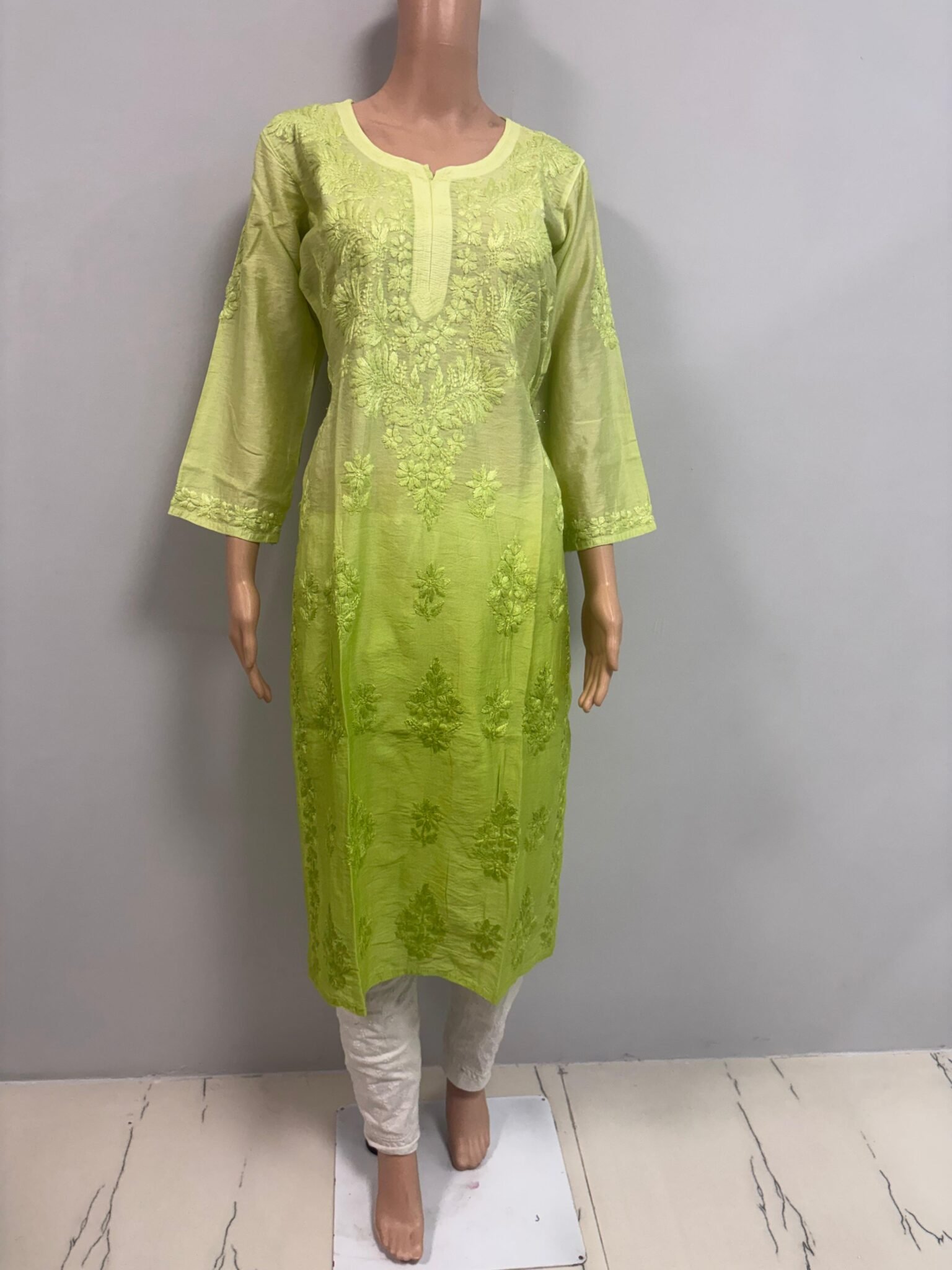 Chanderi Kurti with Color Transition and Chikankari Work | Yellow Green