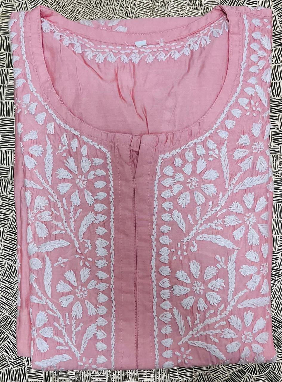 Chanderi Kurta with Chikankari Work | Pink