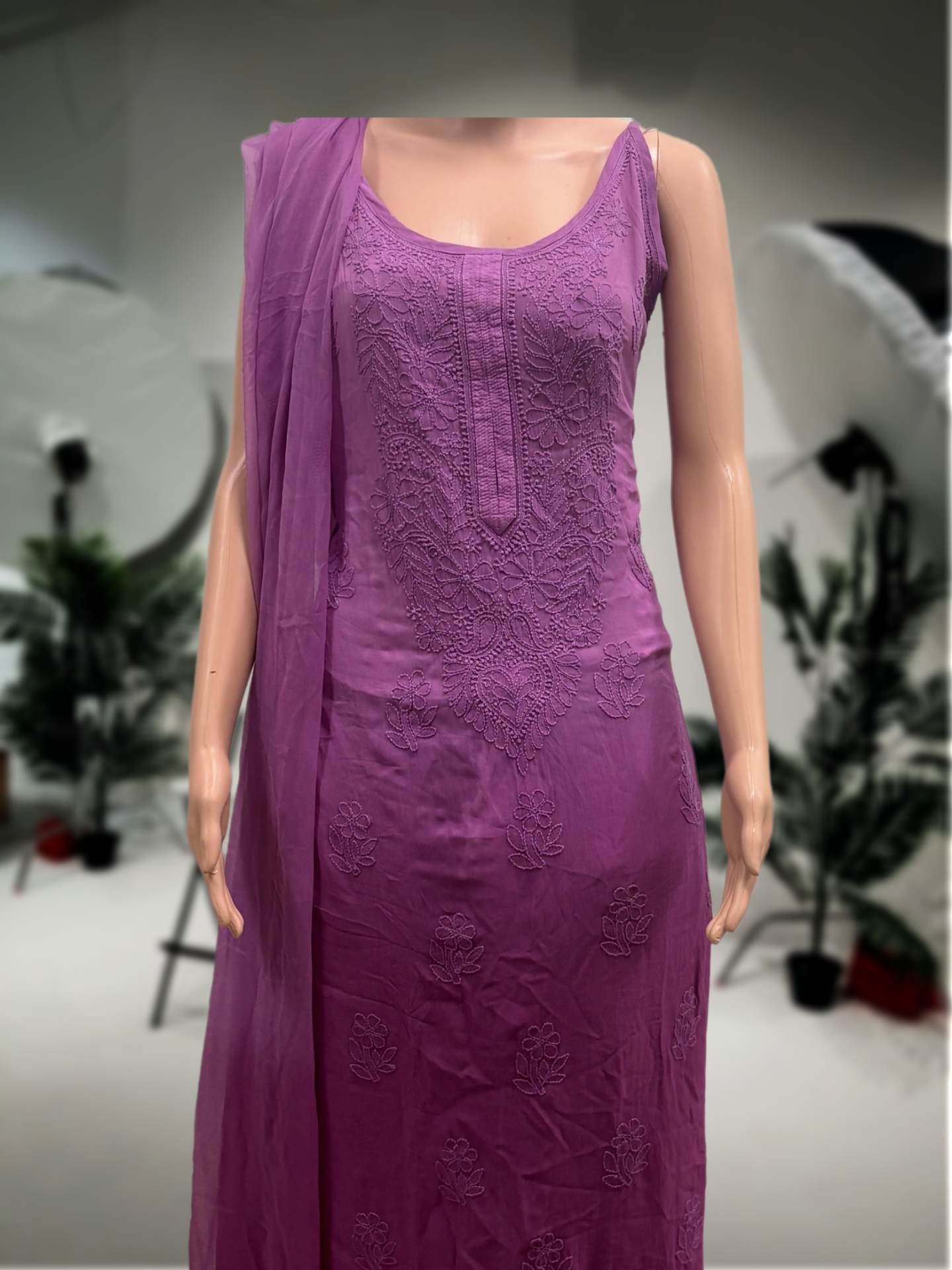 Baaju Kurung new Collection. Set of Georgette Strap Kurti, Palazzo and Chiffon Dupatta with Chikankari Work with wine color. Best Indian fashionable Collection.
