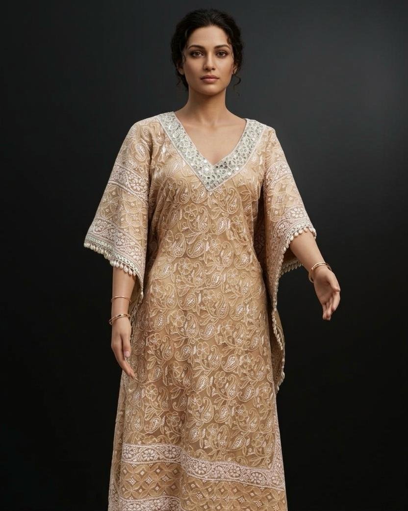 Kaftan Kota Doriya with Chikankari Work | Brown