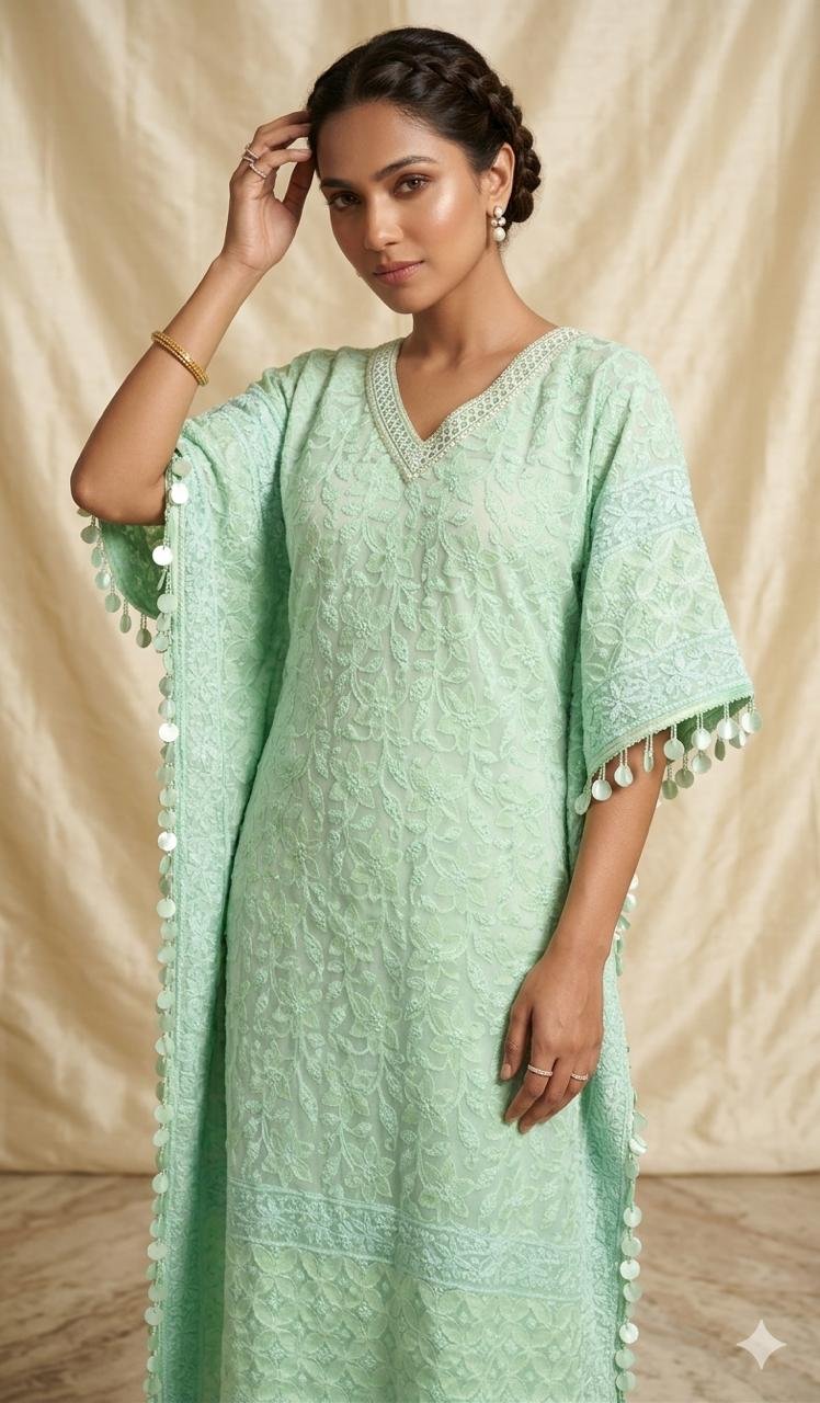Kaftan Kota Doriya with Chikankari Work | Green
