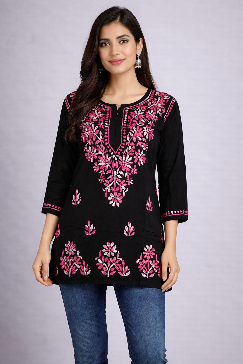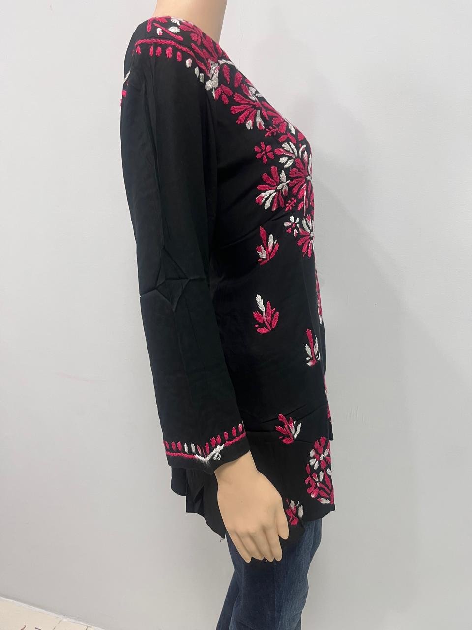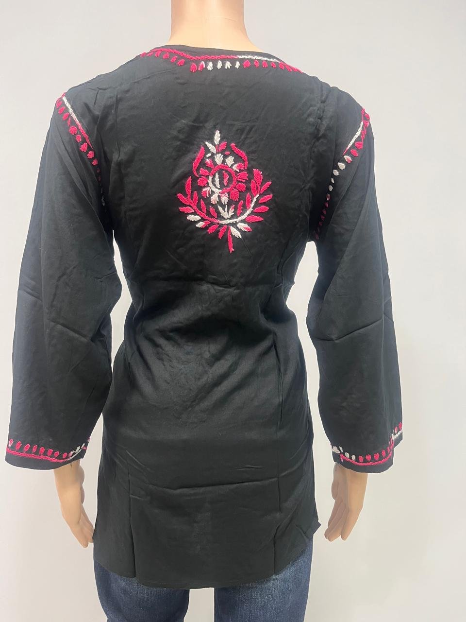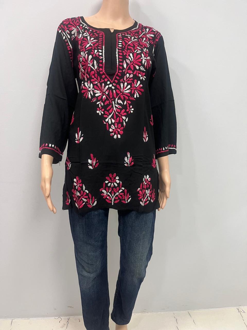 Be the first to review “Rayon Short Kurti with Dual Color Chikankari Work | Dark Pink and White”
