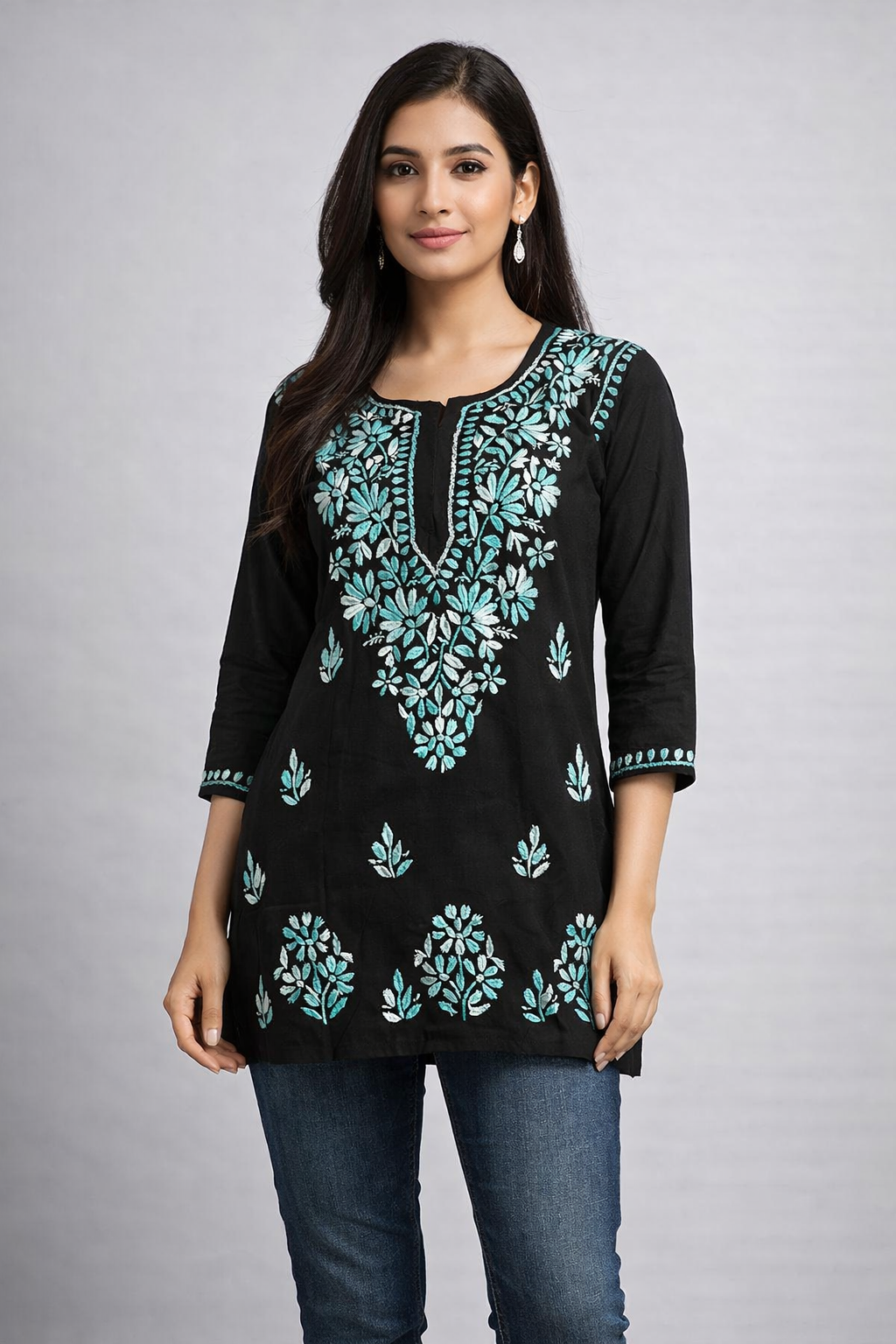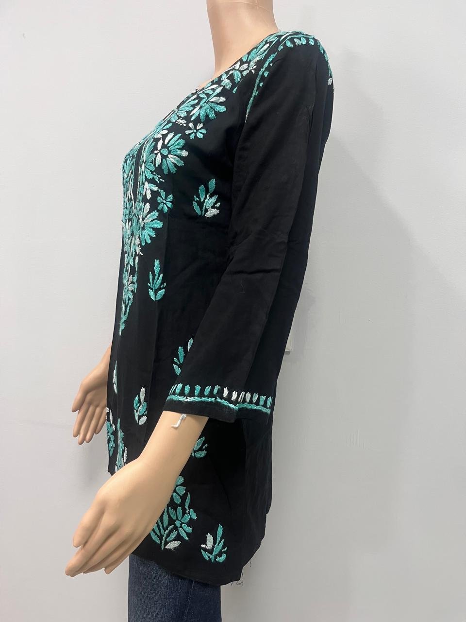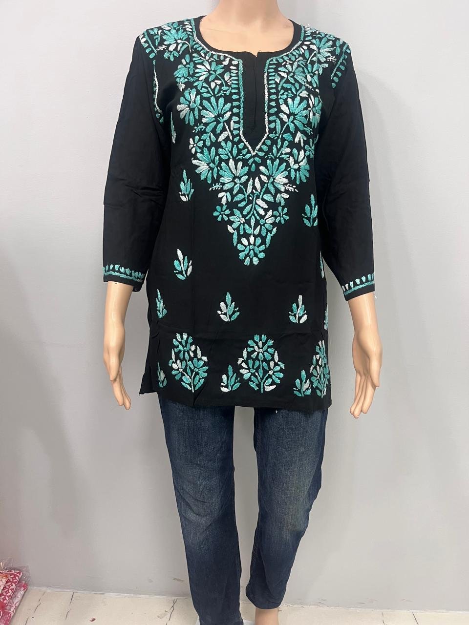 Add a new dimension of modernity to your ethnic wear collection by choosing this beautiful Rayon Short Kurti that features beautiful chikan work. Made from rayon fabric, this short kurti is comfortable to wear as it is soft on your skin. The beautiful Dual Coloured Chikankari Work is sure to add a new dimension to your ethnic wear collection as it will give your outfit a beautiful look. The short kurti style is best worn with jeans or trousers to give your outfit a completely new look by adding a blend of modernity to your Indo-fusion outfit. The beautiful work on this kurti is sure to add to its beauty as it is a beautiful piece of chikan work that is perfect for daily wear, office wear, or social gatherings.